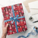 Cute Illustrated Japanese Kokeshi Red Wrapping Paper