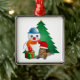 Cute Illustrated Snowman, Cat and Christmas Tree Metal Ornament