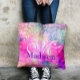 Cute iridescen silver faux glitter monogram personalised Tote Bag. Beautiful, modern and cool for the trend-savvy and art-loving hip trendsetter. This stylish design would be great for girls who enjoy classy sparkly designs. Add your name and monogram it with a cool and modern calligraphy typography. This makes the perfect sweet 16 birthday, wedding, bridal shower, anniversary, baby shower or bachelorette party gift for someone that loves glam luxury and chic styles. Whether for valentines day, Christmas or any occasion in general this cute tote bag will make a great gift idea for any woman who loves modern sparkly elegance. PLEASE NOTE: These are flat printed graphics - no real glitter, jewels or raised parts.