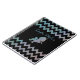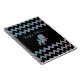 Adorable customizable notebook design with a sparkling unicorn silhouette on a black and zigzag striped iridescent glittery background. The text is fully customizable.