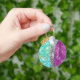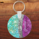 Cute iridescent purple teal faux glitter monogram keychain