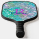 Cute iridescent unicorn blue faux glitter monogram pickleball paddle