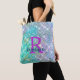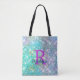 Cute iridescent unicorn blue faux glitter monogram tote bag