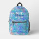 Cute iridescent unicorn blue pink glitter monogram printed backpack