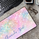 Cute iridescent unicorn ombre glitter unique girly Desk mat. Add a touch of glitter and glam to your home office or dorm with this elegant personalized desk mat. To make it extra special, it is also monogrammed and personalized. click the "customize further" link and use the design tool to modify the design if you like. Show off your personal style, look fashionable, trendy and feel stylish around your friends with a unique design on your mouse pad or customize it over another product of your choice. A unique girly gift for birthday, holidays and any special occasion. Whether for valentines day, Christmas or as a gift in general it makes a great gift idea for any girl who loves modern sparkly elegance. PLEASE NOTE: These are flat printed graphics - no real glitter, jewels or raised parts.