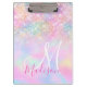 Cute iridescent unicorn ombre glitter monogram clipboard