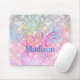 Cute iridescent unicorn pink glitter monogram mouse pad