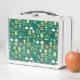 This is a standard metal lunchbox that appears to work just fine. We designed this box ourselves with an uploaded photo and custom text on the front and back. It looks absolutely beautiful except the front of the lunchbox is not centered like it shows in the photo. The print borders don't align with the inset flat part of the box where the preview photo online showed it perfectly centered in there. The back looks nice and centered though.