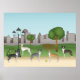 Cute Italian Greyhound Dogs In A Park Cartoon Art Poster