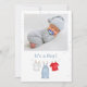 Celebrate your baby boy's arrival with this adorable "It's a Boy" announcement! Featuring a cute, simple clothesline design in a stylish denim blue jeans color, this elegant watercolor illustration brings a modern, trendy touch to your special announcement. The whimsical and unique creative layout is enhanced by beautiful calligraphy script typography, while the minimalist design keeps it simple yet sophisticated. Perfect for sharing your joyful news in a way that's both adorable and chic!