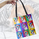 Cute Tote bag in pop art style. It shows a Jack Russell terrier with glasses in different colors like in Andy Warhol's paintings. Ideal gift for dog mom, dog dad, dog lovers or pop art lovers.