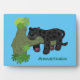 This happy black jaguar is sleeping up in a tree. Drawn in cute cartoon illustration style.