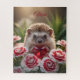 Cute January Hedgehog with Garnet Heart Jigsaw Puzzle