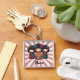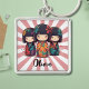 This personalized keychain features 3 cute colorful Japanese kokeshi dolls.