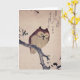 A reproduction of an old Japanese woodblock print of a cute "smiling" owl sitting on a branch. The vintage image has been carefully selected, color corrected, spot cleaned, retouched, cropped and prepared for printing at the highest quality.