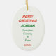 An adorable little raccoon wears a long, curled red and white stocking hat while he juggles colorful Christmas tree bulbs. A red star shines above him. The back has four text fields in red and green for you to customize. Cute for a grandparent to give to a grandchild, or a parent to give to a daughter or son.