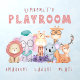 Cute watercolor multi-color jungle animals playroom wall decal artwork with the scripted words Imagine, Laugh, Play in whimsy fun calligraphy, and the word Playroom in a children's block-like topography with hearts. Easily replace your name of choice. What better gift idea than this!