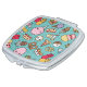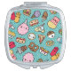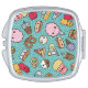 Compact mirror with a super cute junk food illustration. This fun pattern design has burger, fries, hot dogs, pizza, ice cream, popcorn and so many other cute food doodles.