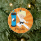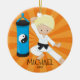 Personalized & Dated Cute blonde boy Karate personalized Christmas Ornament set on an orange background. Visit our shop to view this adorable karate boy in a variety of hair & poses.