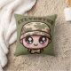 Cute Kawaii Army Camouflage Monogram on Green | Throw Pillow