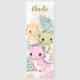 Embark on a prehistoric adventure with this adorable cute kawaii personalized bookmark, featuring three charming baby dinosaurs. These pastel pink, green, and beige dinosaurs boast big, shiny black eyes and rosy cheeks, radiating irresistible kawaii charm. The background is softly painted with watercolor foliage in muted green and blush tones, accented by delicate white dots and dreamy pink flowers. A sweet-smiling pink dinosaur stands proudly in the foreground, while green and beige dinos playfully peek out from behind, adding depth. Perfect for dinosaur lovers and fans of charming watercolor illustrations, this personalized accessory brings magic and whimsy to every reading.