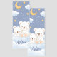Capture the serene magic of nighttime with this whimsical cute kawaii personalized bookmark. Two adorable baby polar bears are snuggled together on a fluffy cloud, their peaceful expressions and rosy cheeks adding irresistible charm. Set against a dreamy blue sky sprinkled with golden stars, twinkling dots, and fluffy white clouds, a crescent moon glows warmly above them. This soft, pastel artwork creates a calming, sleepytime design, perfect for sweet dreams and gentle reads. Ideal for animal lovers and bedtime stories, this personalized accessory adds an adorable touch to your reading routine.