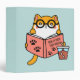 Cute Kawaii cat reading a book 3 Ring Binder