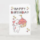 Cute Kawaii cat with cupcake Happy Birthday Card