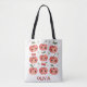 A playful and adorable personalized kids' tote bag features kawaii-style cherries with sweet smiling faces, rosy cheeks, and tiny bows. Surrounded by soft pastel flowers and hearts, this charming design brings a fun and cheerful vibe to baby and kids’ rooms.