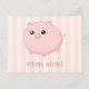 A Very cute kawaii style chubby pink pig on striped princess pink and cream white