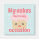 Adorable pink cupcake with quote "My cakes rise to any occasion" on dotty background.