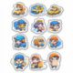 Cute Kawaii Delivery driver, home delivery services like Spark, Uber, Doordash, or Instacart. Self-employed drivers. Blue, yellow, and orange colors.