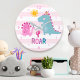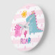 Cute Kawaii Dinosaur Girl Pink Nursery Fun Roar Large Clock