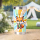 Cute baby fox holding a boba or bubble tea Kawaii cartoon. Personalized water bottle.