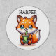 Cute baby fox holding a boba or bubble tea Kawaii cartoon. Personalized patch.