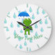 Kawaii (meaning "cute" in Japanese) style frog covers itself with an umbrella and enjoys the rain.