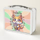 Cute Kawaii Kitten with Bubble Tea Personalized Metal Lunch Box