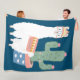 Cute Kawaii Llama and Cactus Illustration Fleece Blanket