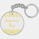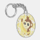 A very cute and kawaii monkey holding a banana, the background in yellow tones and banana pattern. . On a keychain with the option you add your name.