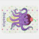 A very cute kawaii style purple octopus sitting in a ice cream cone, with chocolate syrup and a cherry on top. Seen here on a baby blanket with a trendy simple geometric watercolor background.