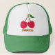 This cute design features a cute kawaii cherry smiling, with personalized words under it that says what you want it to say. This hat is great ofr fun in the sun.