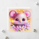 Cute Kawaii Pink Mouse, this design features acute kawaii pink mouse with lavender flowers.