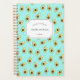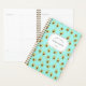 Adorable avocado patterned planner features an allover pattern of smiling and winking kawaii style avocados on a bright turquoise aqua background. A cute design that's perfect for avocado lovers or kawaii fans, this chic light teal planner can be personalized with three lines of custom text on the front cover.