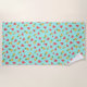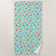 Adorable tropical fruit patterned beach towel features an allover pattern of smiling pineapples and watermelons on a summery turquoise background. A quirky and cute design for anyone who loves the kawaii style.