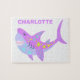 Cute Kawaii Smiling Shark in Purple Personalized Jigsaw Puzzle