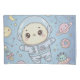 An enchanting and ultra-sweet illustration combining the theme of Outer Space with a soft Kawaii style. The design features a cute little character (like a bunny or cub) in an astronaut suit, floating among smiling planets, moons, and flying objects (including Saturn, a UFO, rockets, and even a space donut). The color palette is pastel, soft, and gentle (blue, pink, and light yellow). Perfect for children's room décor, bedding products, themed parties, and any product intended to spark imagination and sweet dreams.