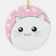 A Very cute kawaii chibi style chubby kitty cat on pink background of white stars and cat