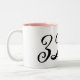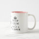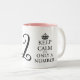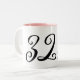 Cute keep calm quote 32nd Birthday coffee mug gift. Funny Keep Calm and Carry On meme for thirty-two year old. Make your own age specific spoof with custom number. Cute typographic cups for men or women. Modern typography template with crown. Pink or custom color inside.