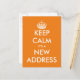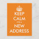 Cute keep calm moving postcard for new address / relocation or housewarming party. Make your own funny keep calm and carry on parody design for your new house. Keepcalm humor for change of address concerning home and business company location. Change quantity to get the cheapest price per post card. Cheerful bright orange or custom background color. Vintage typography template with crown.