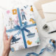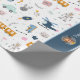 Add a custom touch to the birthday gift of your little boy with this adorable kid wrapping paper. Gift wrap has a pattern of a train, car, rocket ship, pirate, boat, helicopter, robot, cat, bunny, duck, dinosaur, and more. Add a photo and first name on the blue area for a personalized touch.